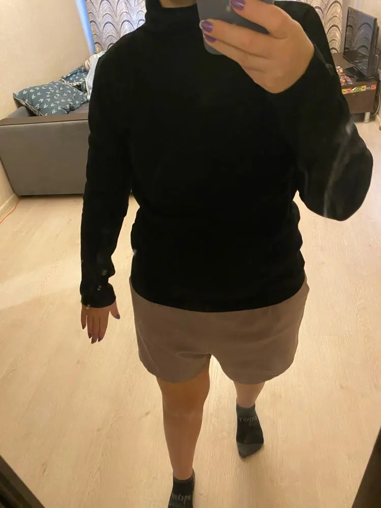 Хорошая и тёплая водолазка. На 46 р L села хорошо. Рукава длинные, а руки у меня не короткие, очень комфортно. Оригинальный ворот, защищает шею. Заказала маме в другом цвете, тк понравилось качество. Советую к покупке, потому что сама заказывала по наводке Гали @gravitsappa, а ей я доверяю.