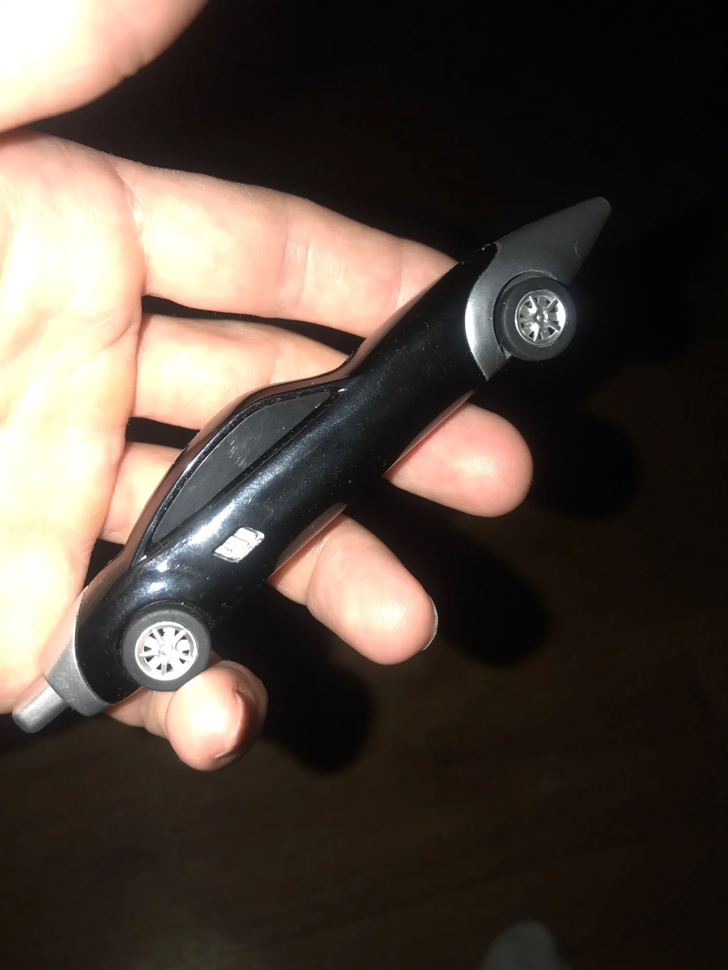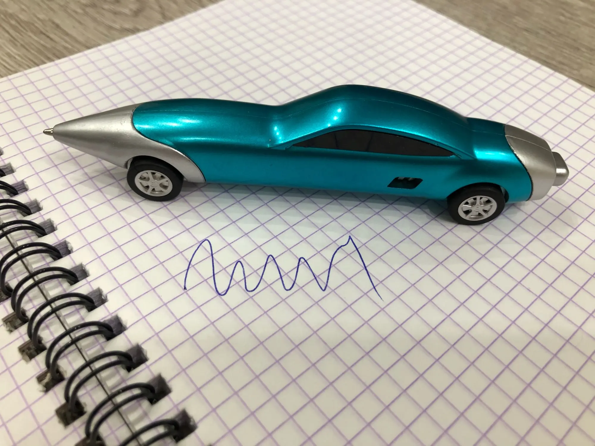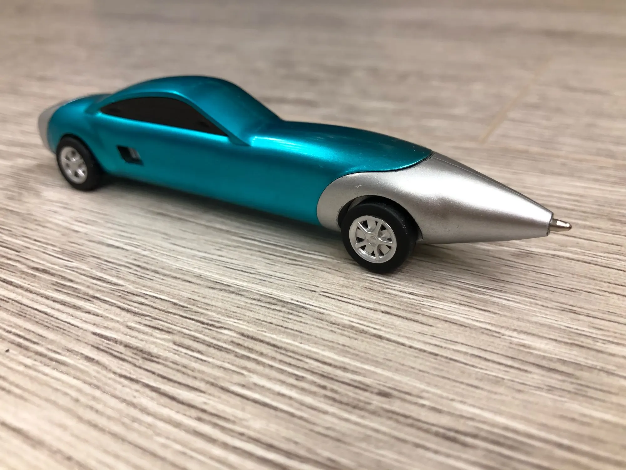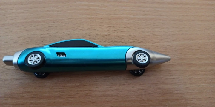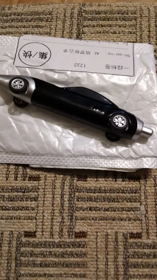Ручка классная, пишет, ездит. Стержень можно заменить (потянуть за нос машины). Держать ребёнку, конечно, не очень удобно, скорее забавы ради. Пришла в Москву где-то в течение месяца в общей посылке
