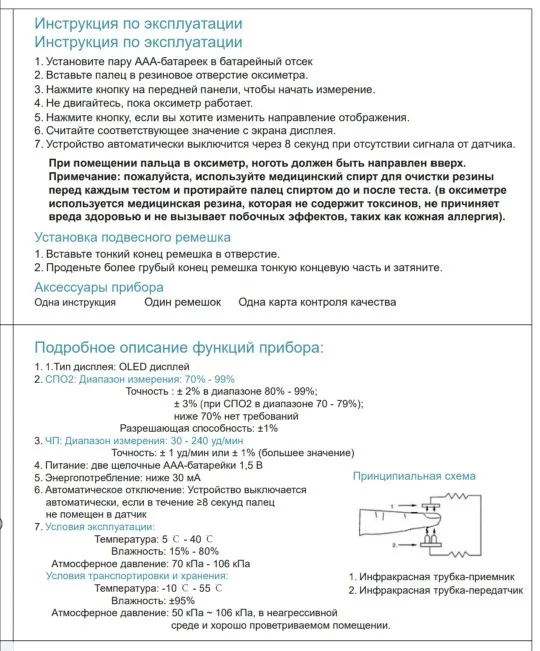 Пульсоксиметр очень понравился, не зря выбирала долго! Отзывы очень помогли, поэтому решила тоже. добавить свой. Большой плюс тому, что заряжается, везде эти батарейки уже что-то напрягают... Все аккуратно упаковано, все отлично работает, позже будет возможность сравнить, добавлю отзыв. Продавец очень вежливый, отправил товар в день оплаты, через 2 недели прибор был уже получен! Не тратьте время на поиски, смело заказывайте!
