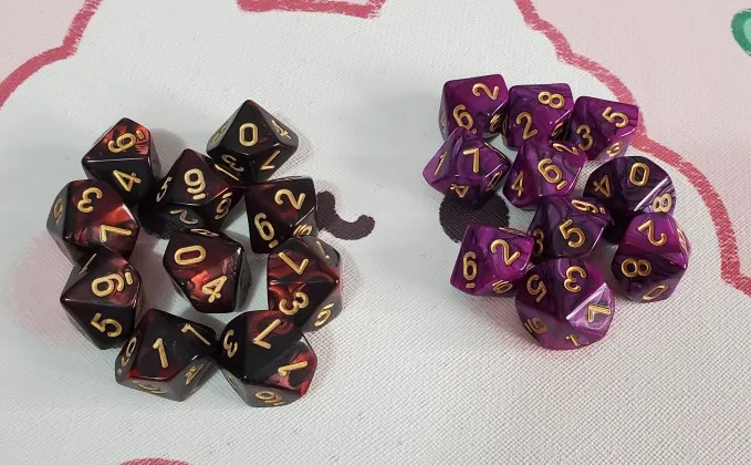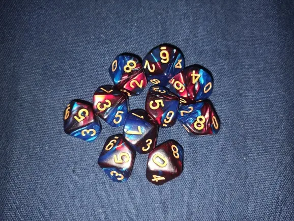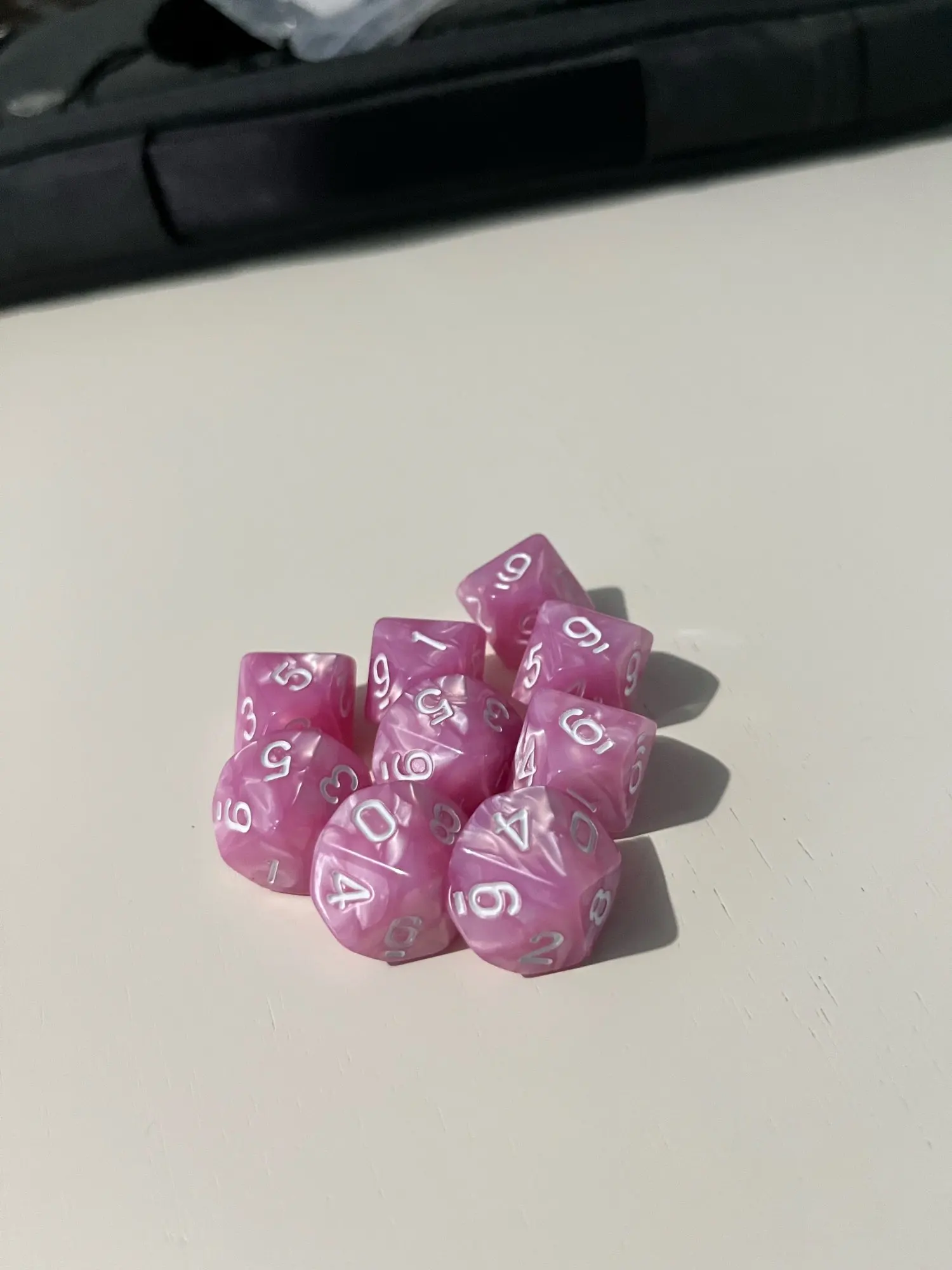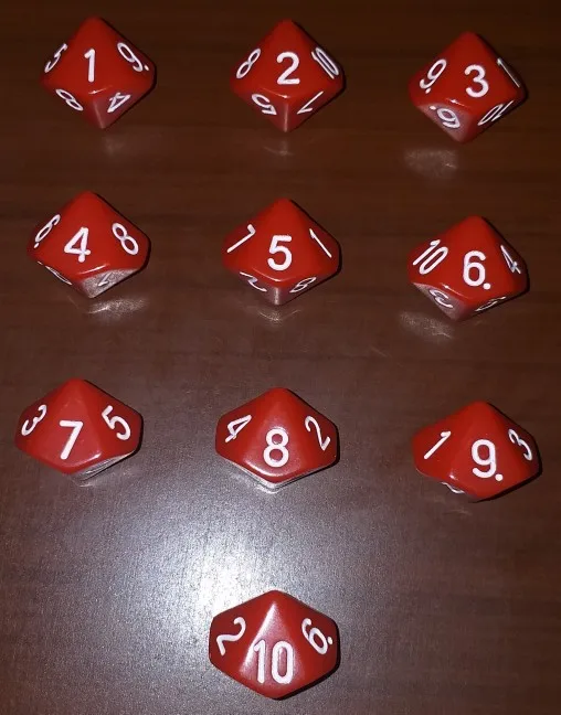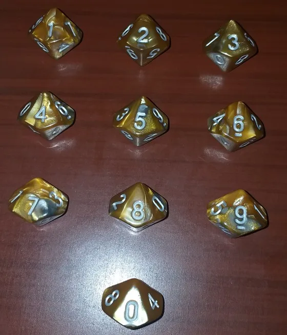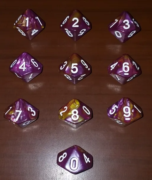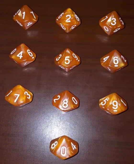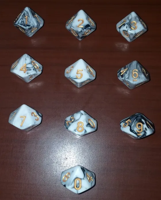 Я должен был посмотреть на фотографии ближе, я не понимал, что это было 10 одинаковых кубиков! Хахаха, я думал, что это набор RPG кости, но это's хорошо они're супер красиво и так дешево. Прибыл в Канаду менее чем за месяц