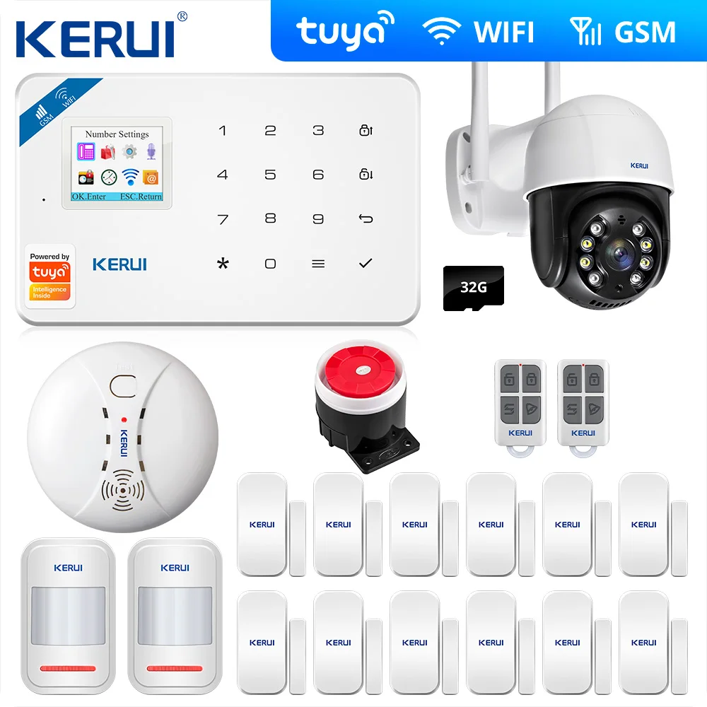 Arm и disarm KERUI сигнализация с вашим голосом и получать мобильные оповещения о двери/окна открытия или дыма
