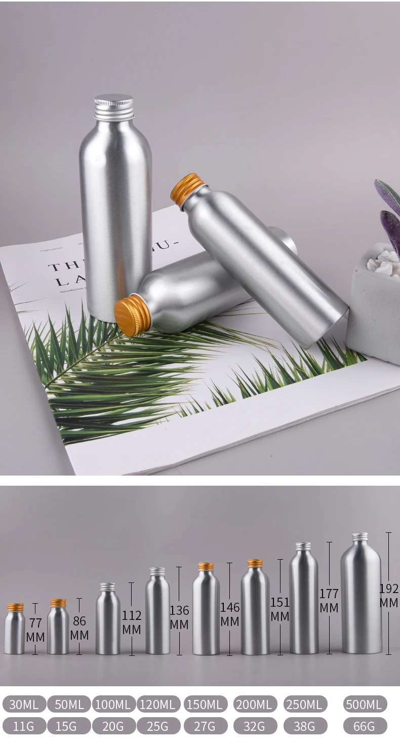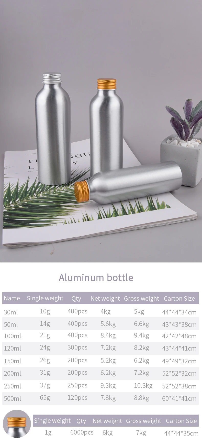 Лидер продаж! Алюминиевая бутылка 30-500 мл, 5 шт., золотистаясеребристая алюминиевая винтовая крышка, Бесплатная доставка по низкой цене, многоразовая бутылка (без утечек)