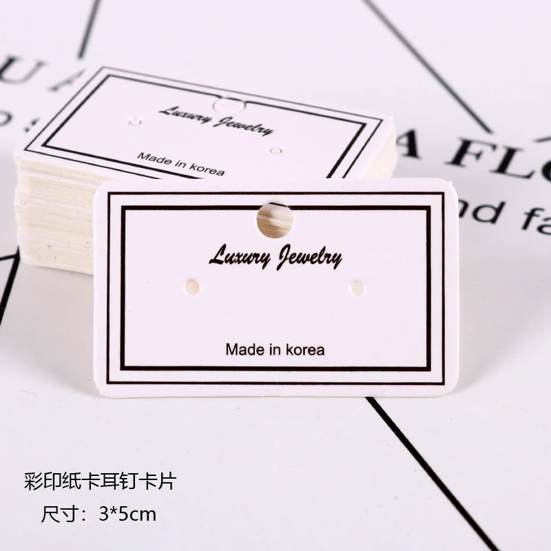 100 шт., 3x5 см, 5x5 см, белая бумага, ювелирные изделия, дисплей, шпильки, серьги, карты, бирка, бирка для ювелирных изделий, сделай сам, аксессуары, индивидуальный логотип
