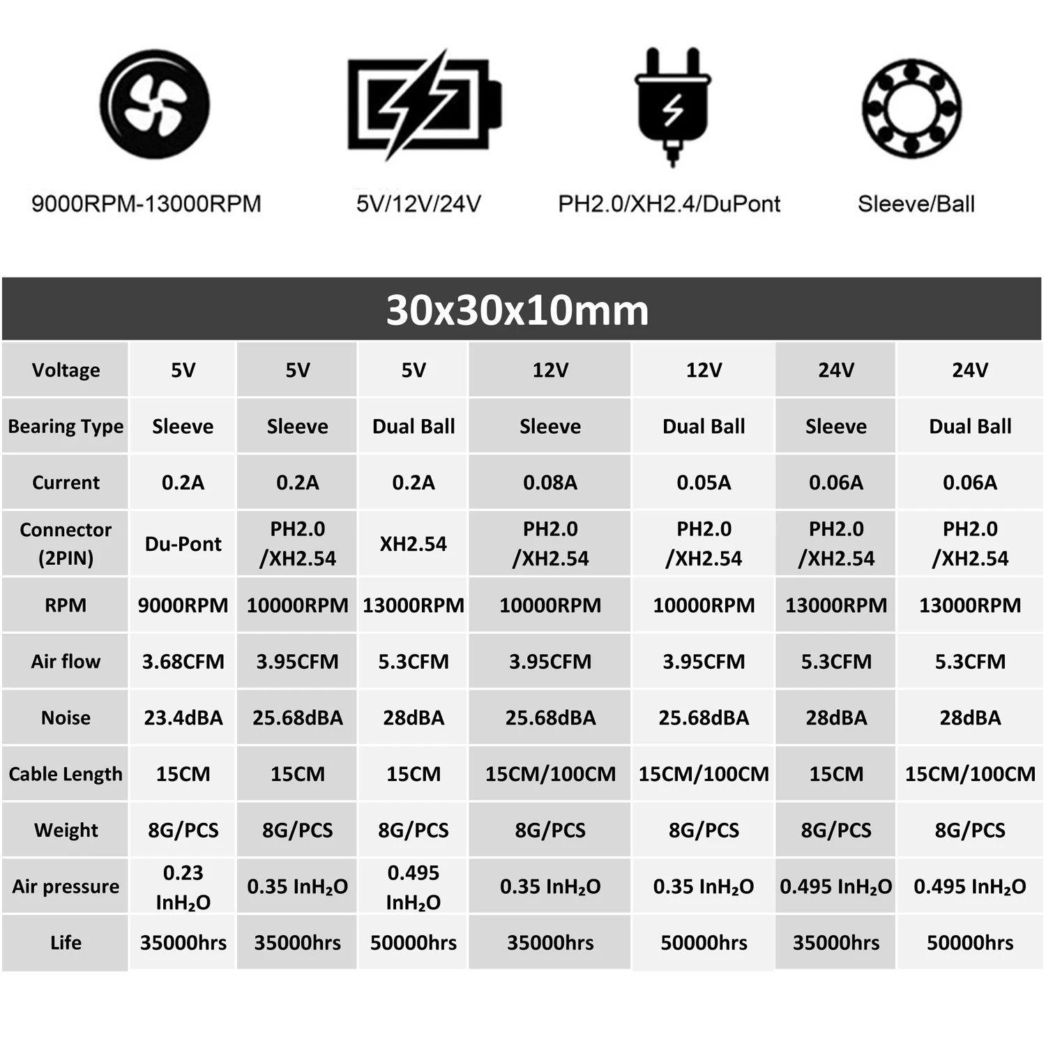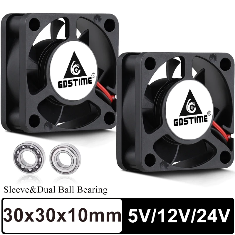 5 шт. Gdstime 30x30x10 мм DC 24 в 12 В 5 в двойной шар бесщеточный 30 мм охлаждающий вентилятор 3 см 30 мм x 10 мм маленький мини 2-контактный кулер 3010