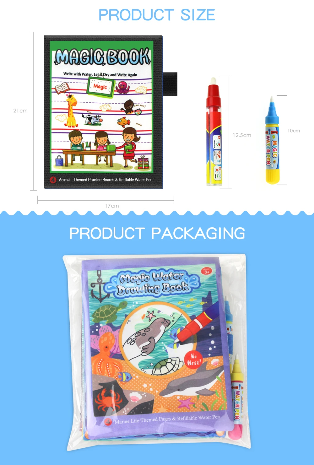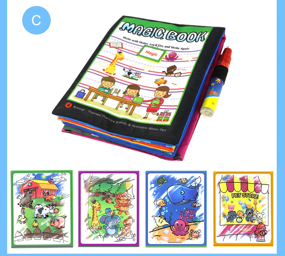 Представление:Просто наполните волшебную ручку водой и проведите на белой поверхности коврика,Тогда вы сможете увидеть красочные изображения.Через несколько минут изображения медленно потускнеют.Так что дети могут использовать волшебный коврик снова и снова.Водный коврик подходит для детей свыше 3 лет года.Если вам нужно постирать коврик, вы можете помыть его теплой водой и высушить, но не трите.Этот волшебный водный коврик поможет детям узнать больше знаний о животных и морских животных, а такжеМожет помочь детям узнать животных и перекрасить их.Характеристики:1. Материал: Нетоксичная ткань2. Цвет продукта: многоцветный (как показано на рисунке)