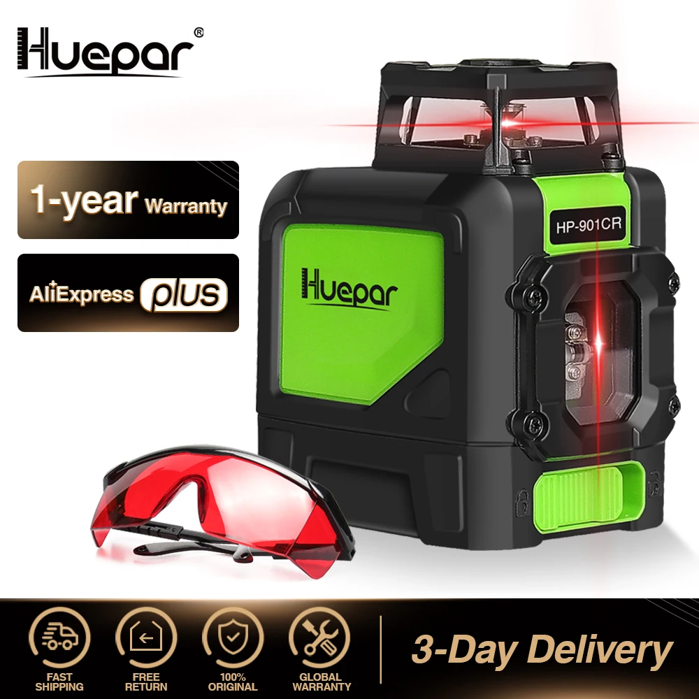 Лазерный уровень Huepar, 5-линейный красный, с вращением на 360 градусов