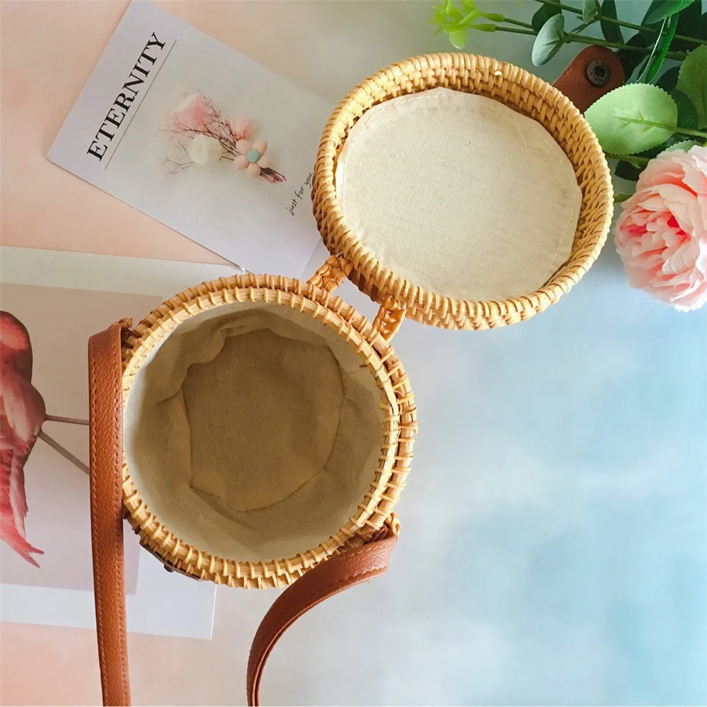 Плетеная пляжная сумка ручной работы из ротанга и соломы ручной работы в богемном стиле ретро винтажная модная тканая сумка для домашнего хранения Круглая круглая маленькая круглая сумка для женщин