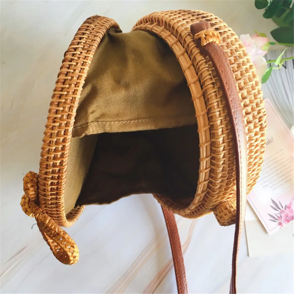 Винтажная модная плетеная Сумка из ротанга в богемном стиле ручной работы, пляжная сумка с круглым бантом, женская сумка для хранения дома