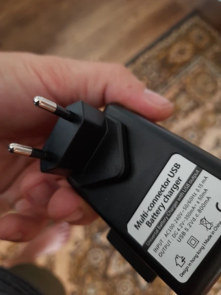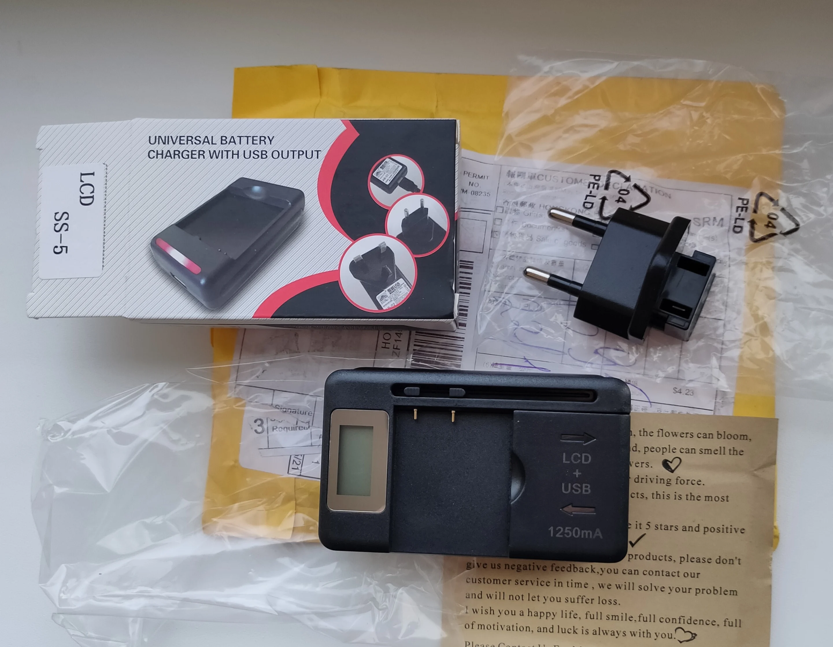Получил через 1,5 недели после заказа. Зарядил две батарейки, нормально заряжает. Индикация заряда работает. Посмотри надолго ли его хватит