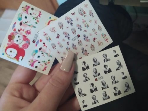 наклейки классные не на липкой основе это огромный плюс четкий рисунок на ноготь поместятся т. к. не большой размер