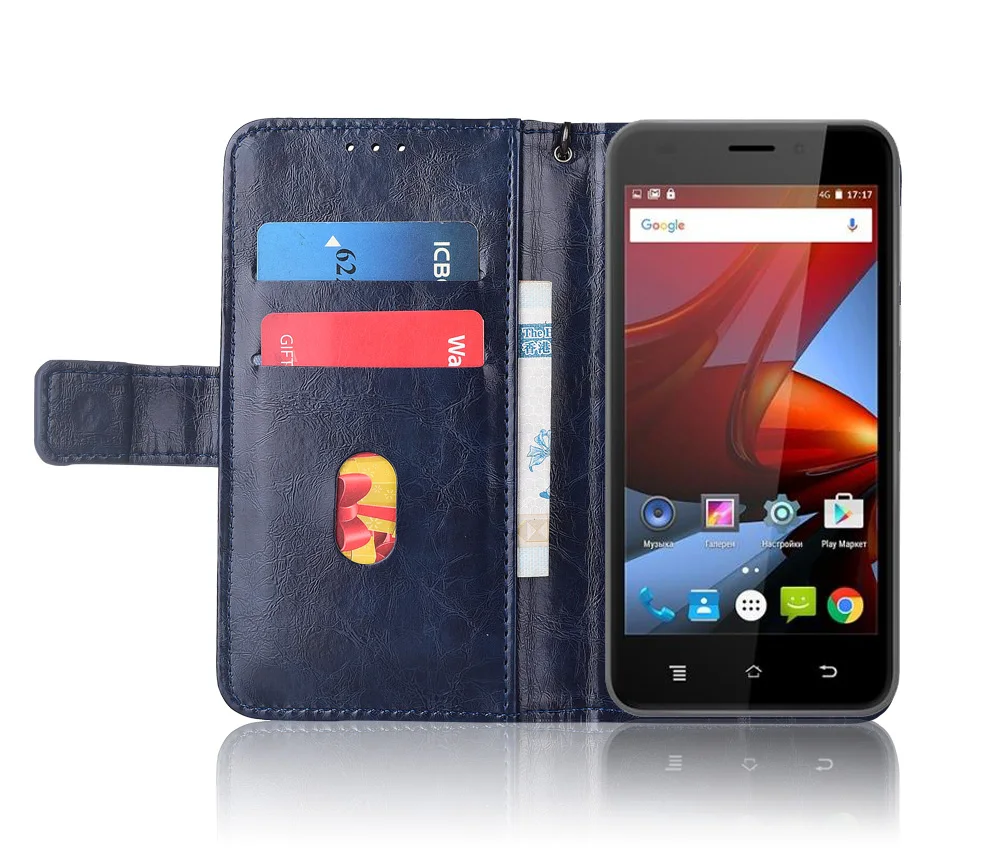 Кожаный чехол-книжка с ремешком для Prestigio Grace Q5, чехлы с цве...