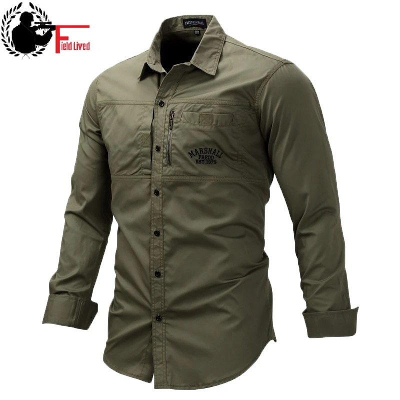 Мужская рубашка в стиле милитари, зеленая, синяя или хаки рубашка с длинными рукавами и воротником, на пуговицах