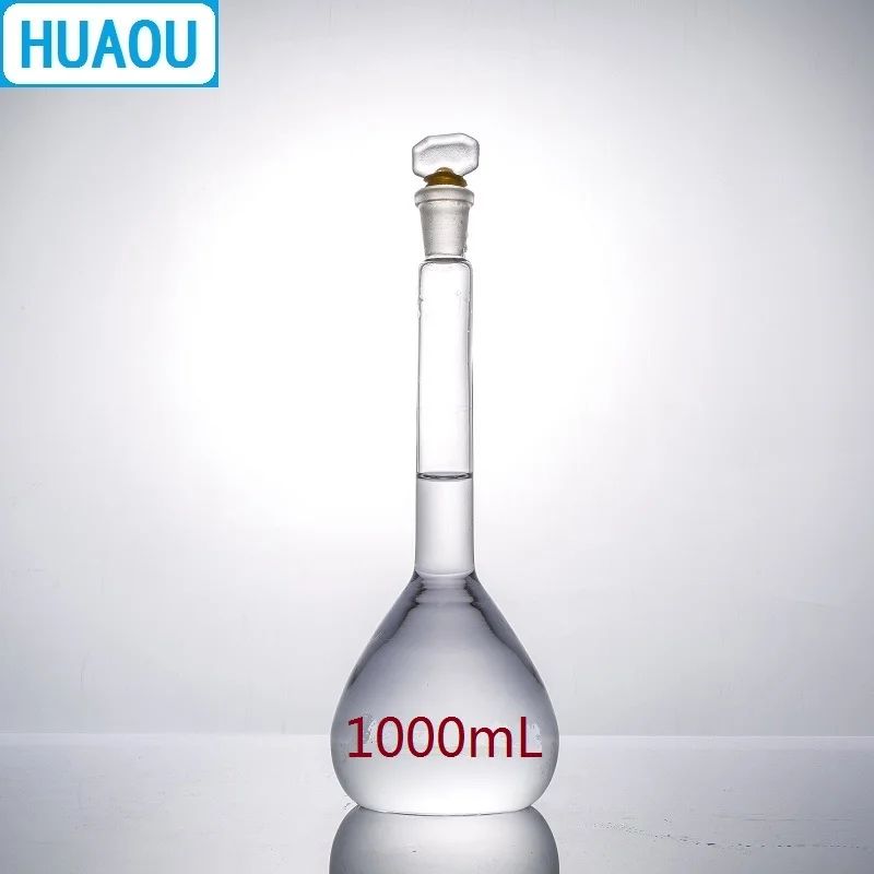 Объемная колба HUAOU 1000 мл, нейтральное стекло класса А с одной градацией и стеклянной пробкой, лабораторное химическое оборудование
