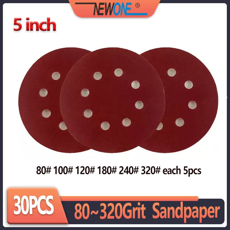 Шлифовальная бумага NEWONE, 5 дюймов, 125 мм, 8 отверстий, Зернисто...