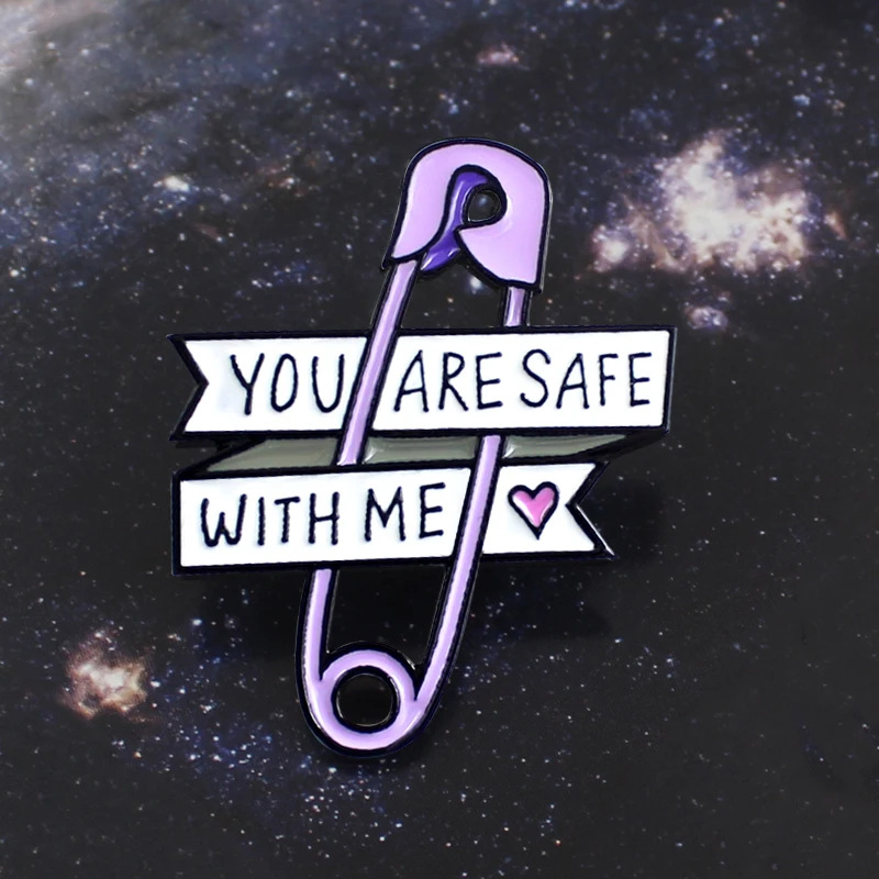 Креативная мультяшная брошь YOU ARE SAFE WITH ME с фиолетовой булав...