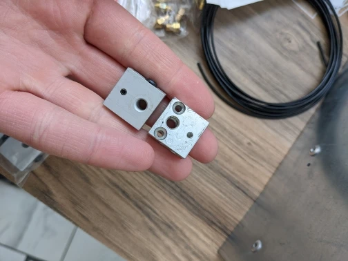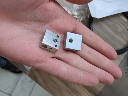 блок отличный, мне понравилось. материал "латунный сплав". Важно, если переходите с алюминия, на латунь, медь и тд, делайте калибровку PID.