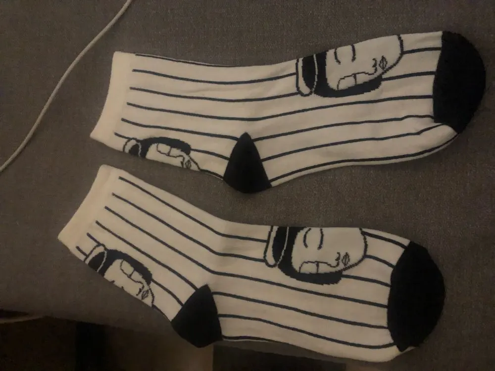 Носки выглядят потрясающе, хотя черные линии и черные части изображения не из хлопка. Тонкие носки, хорошо подойдут на весну, лето и осень