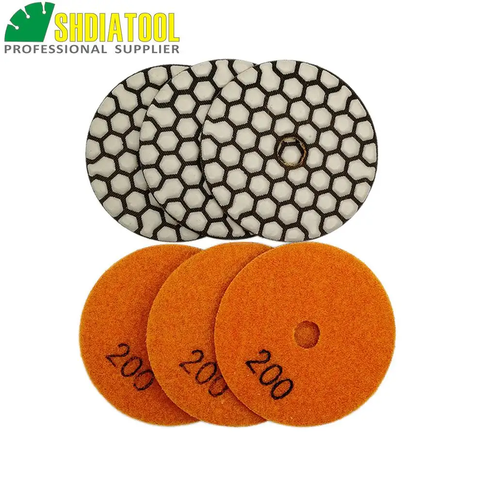 SHDIATOOL 6 шт. 80 мм # 200 Алмазные полировальные диски для сухой полировки 3-дюймовые шлифовальные диски Гранит Мрамор Керамика Смола Связка Гибкий шлифовальный диск