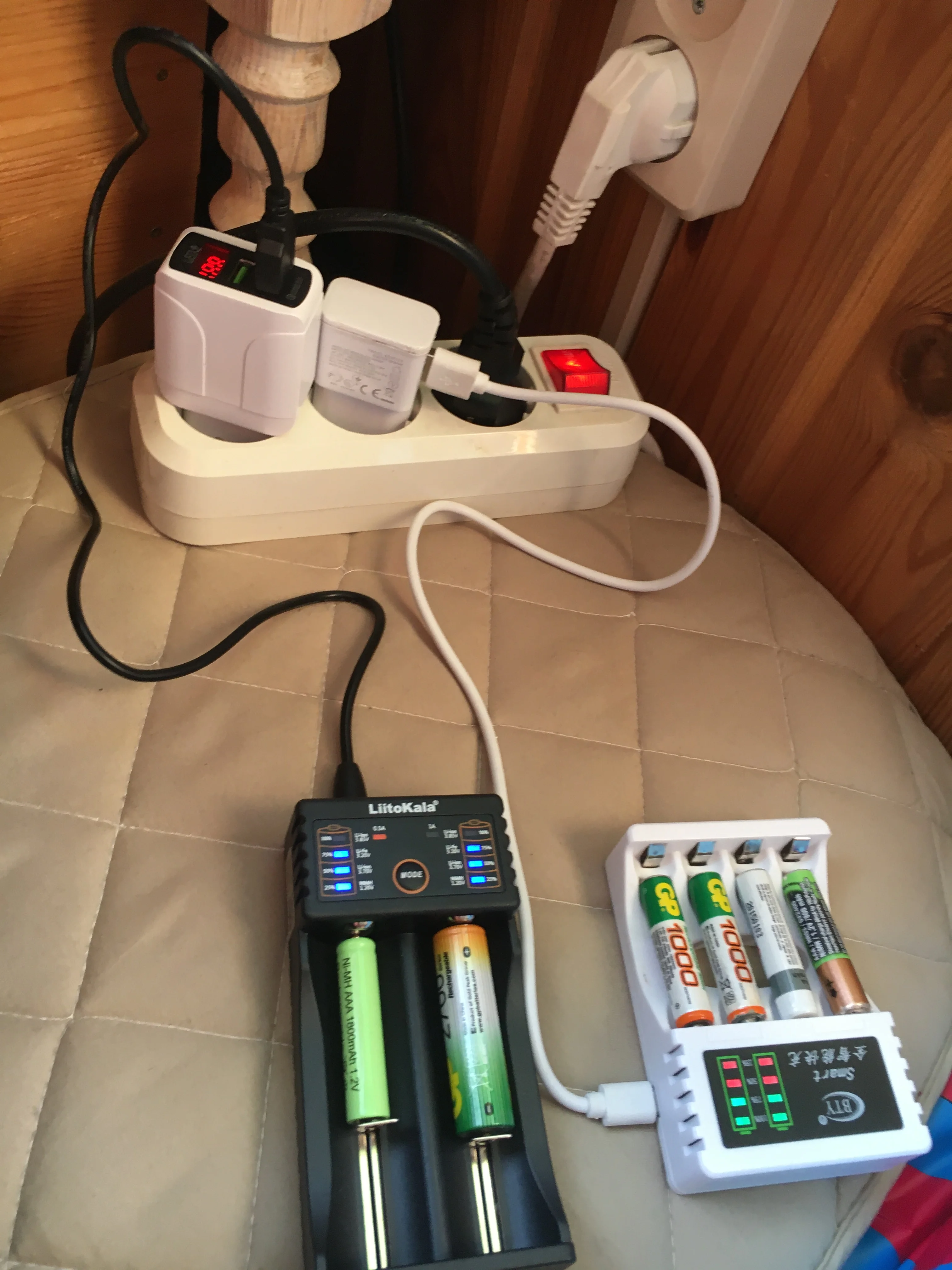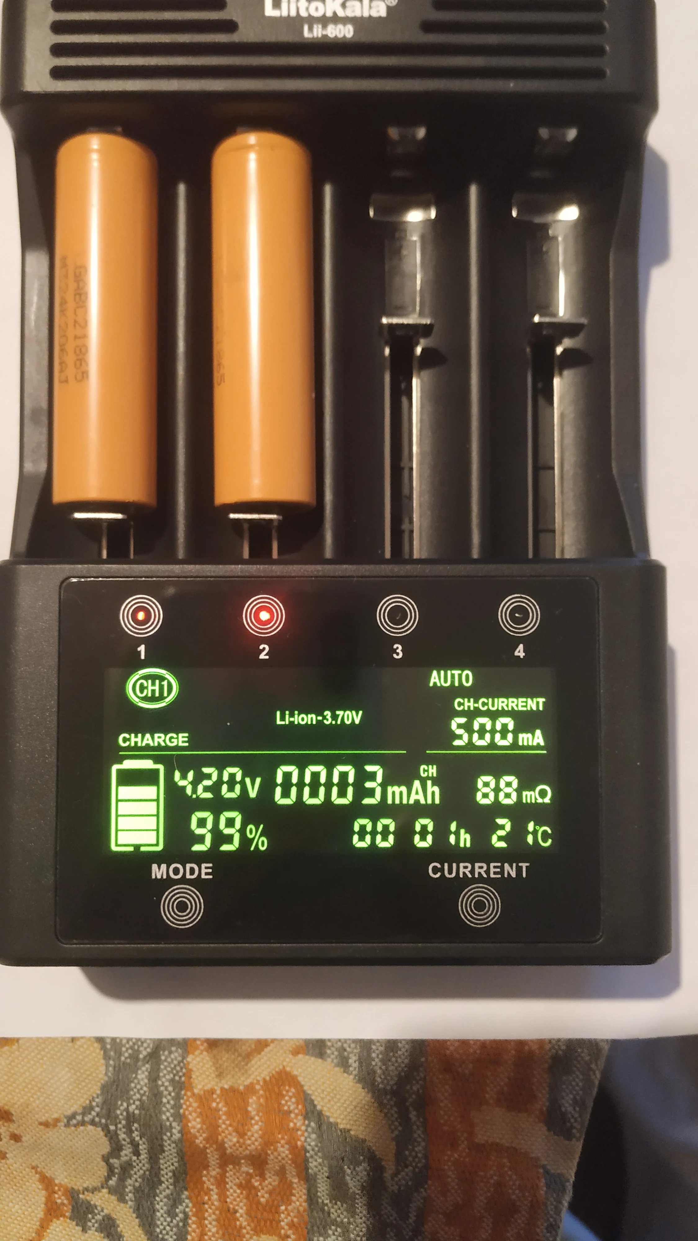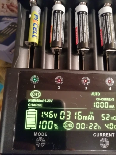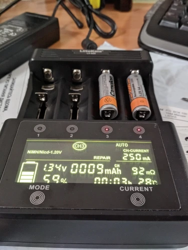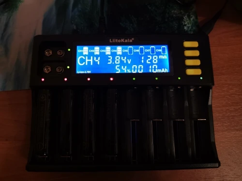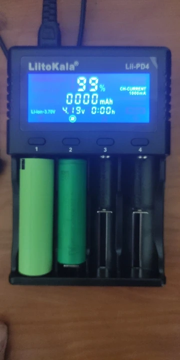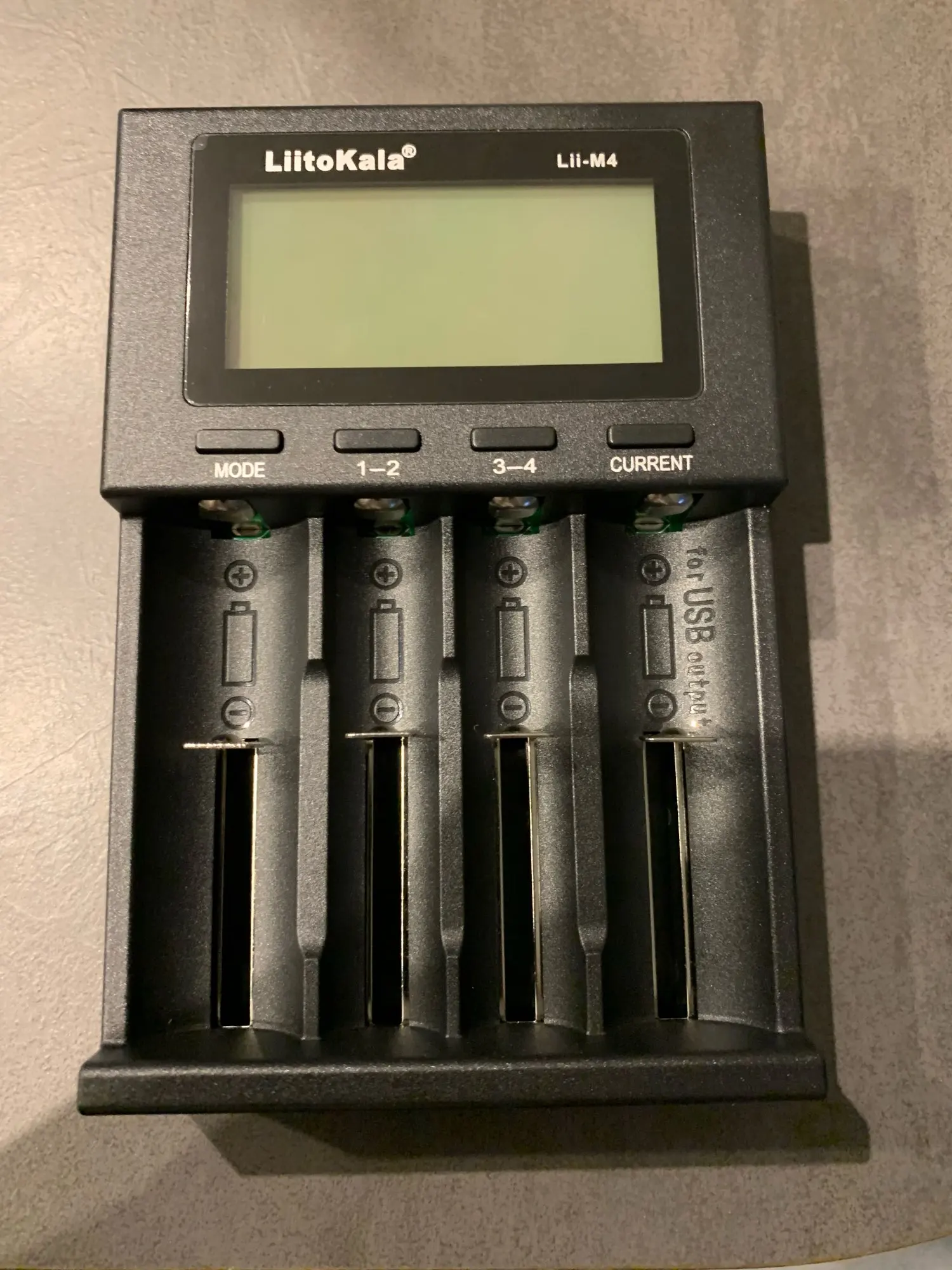 Хорошее зарядное устройство. Покупал Lii-M4, потому что оно +- технологичное и обладает функцией не только заряда, но и теста. Li-ion из глубокого разряда не вытаскивает, только заряжает, разряжает да емкость показывает. Можно выбрать ток заряда/разряда — 500 или 1000 мА. В принципе, удобно. Питание от адаптера 5 В 2 А, провод type c. Без внешнего питания может использовать батарею в каком-то слоте как повербанк и на выход выдавать 5 В. Эту функцию не проверял, не было нужды. Для моих задач подходит. Пришло быстро в пятерочку.