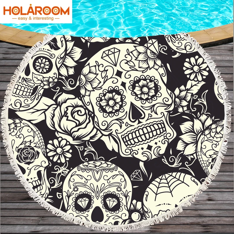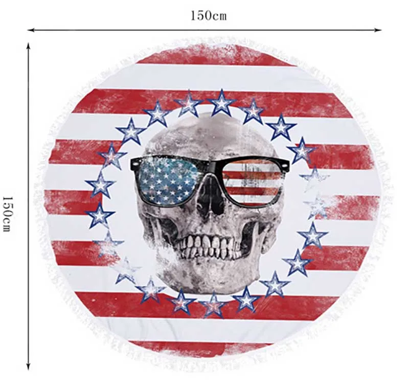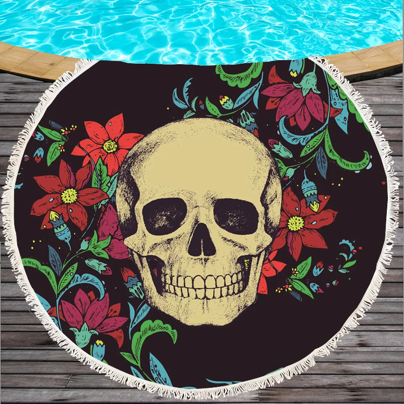 Пляжное полотенце с принтом черепа, круглое пляжное полотенце для пляжа, плотное полотенце, гобелен, коврик для йоги, 150 см, одеяло для загара, 150 см