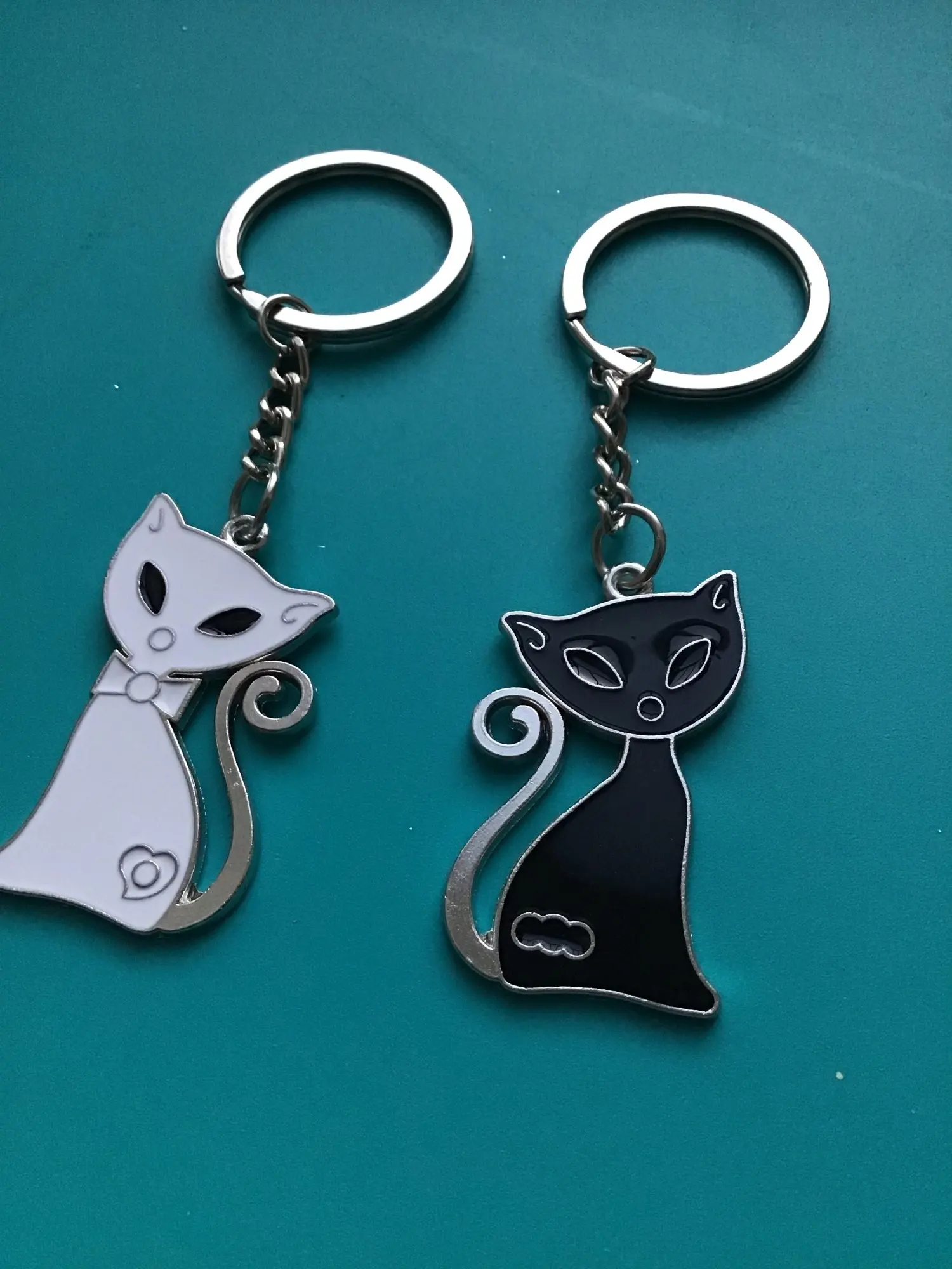 Брелок для ключей с изображением белого и черного кота для пар 2018, модный брелок с изображением мультяшного кота, креативные автомобильные брелки с животными, новый подарок