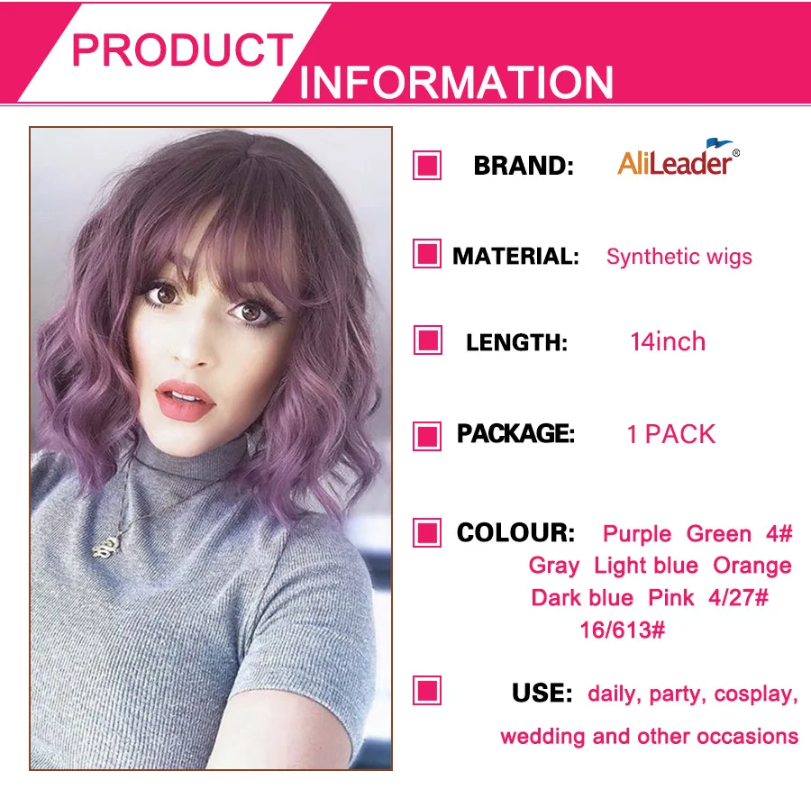 Alileader 12 дюймов синтетические Короткие бобы парики с челкой для...