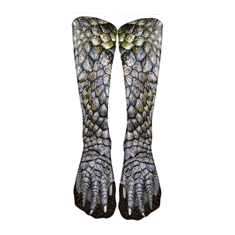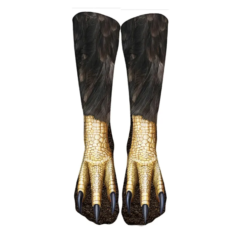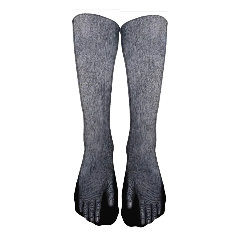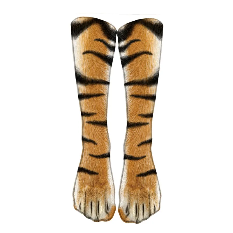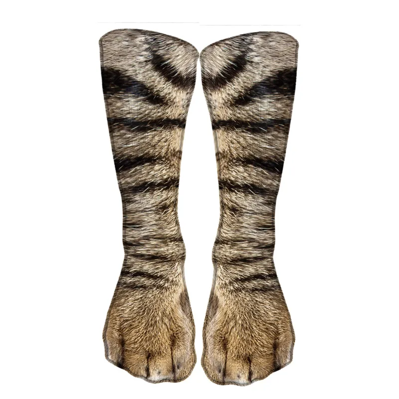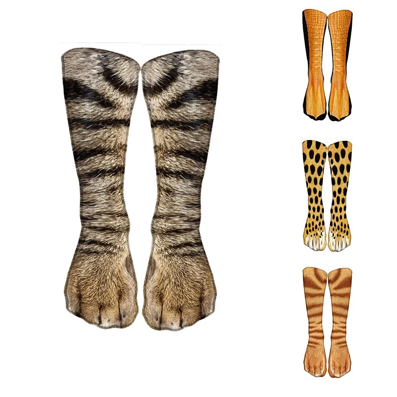 Модные длинные носки с 3D-принтом лапы животных, забавные носки с курицей, котом, носками для мужчин, милые женские носки до середины икры для занятий спортом на открытом воздухе