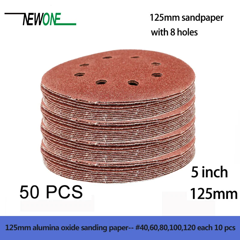 50 шт., круги из шкурки для шлифовальной машины, зернистость 125 мм