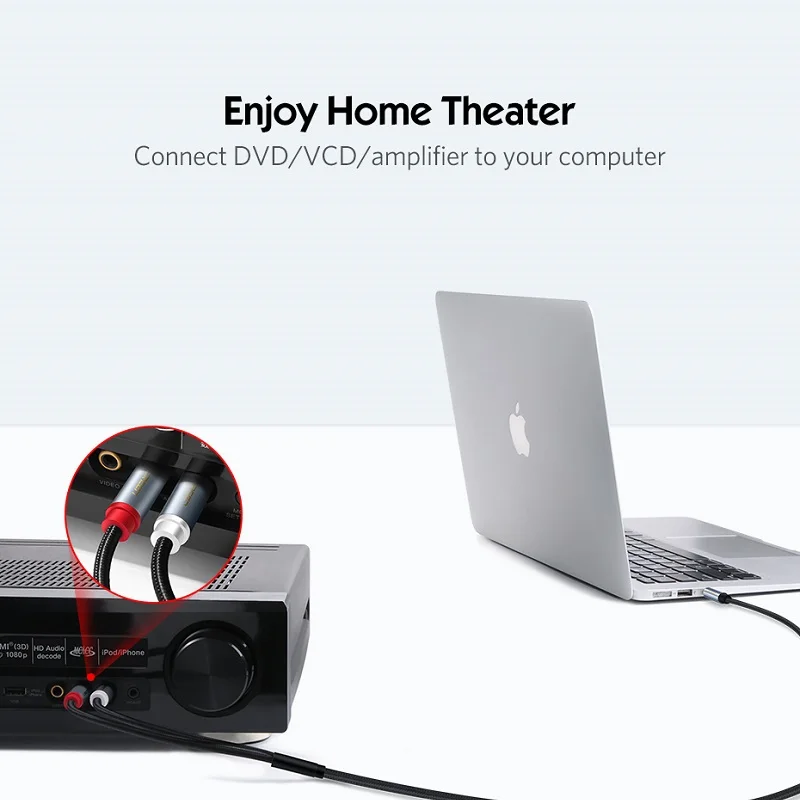 Аудиокабель Ugreen RCA с двумя штекерами 3,5 мм и оплеткой AUX для домашнего кинотеатра