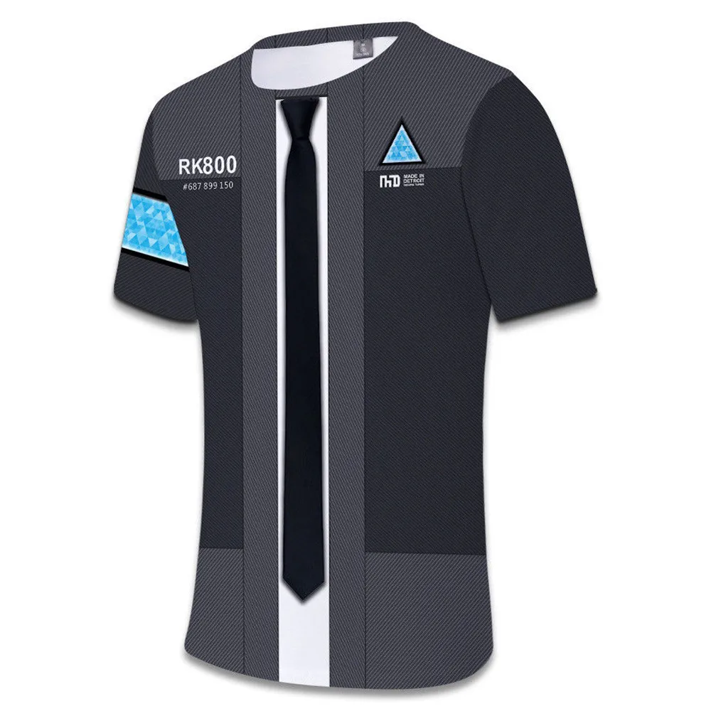 2018 Detroit: стать футболка с изображением Человека углами RK800 3D Мужская футболка с рисунком летняя одежда в стиле хип-хоп классная короткий рукав аниме Косплэй футболки