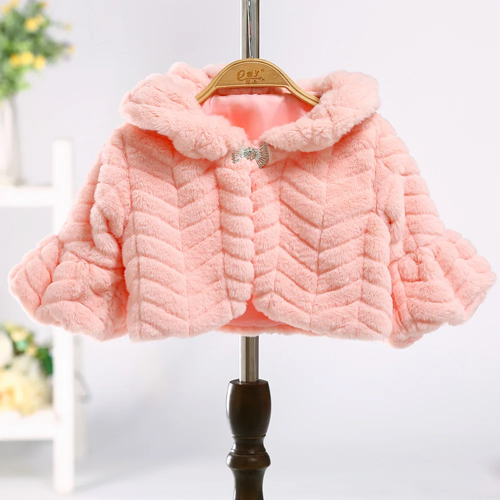 Детское меховое пальто для девочек, зимние куртки, Детские пальто из искусственного меха, пальто с капюшоном, утепленная верхняя одежда, теплая городская одежда для малышей