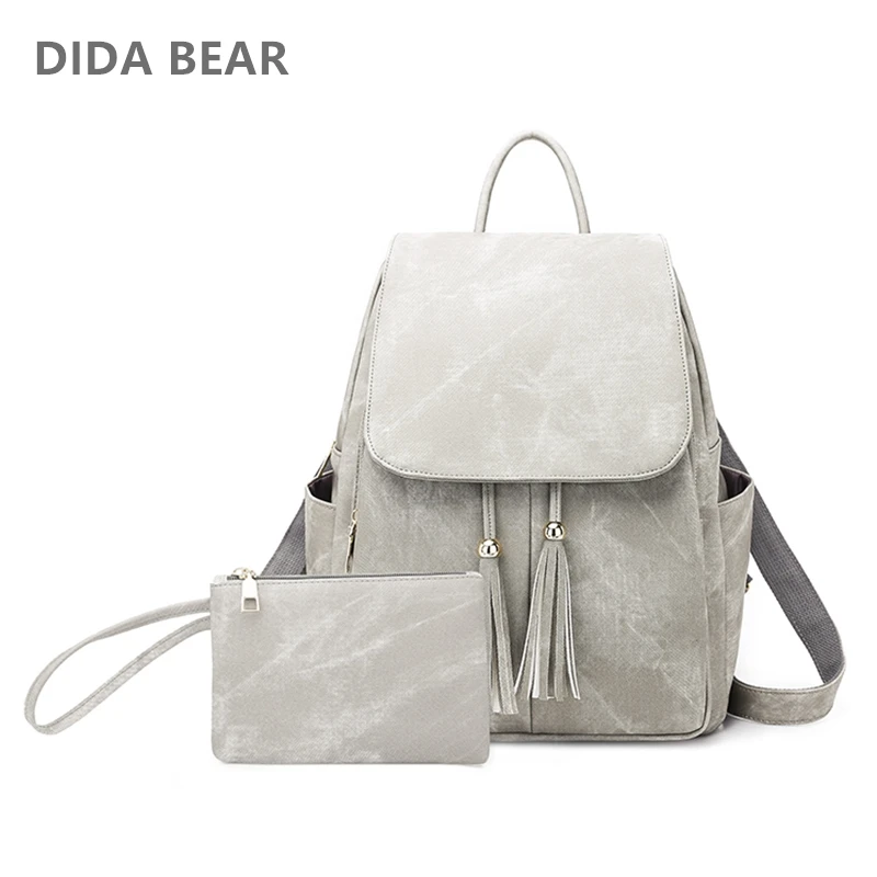 Набор из 2 предметов DIDABEAR, Модный женский кожаный рюкзак, школьные ранцы для девочек-подростков, женский рюкзак с кисточками