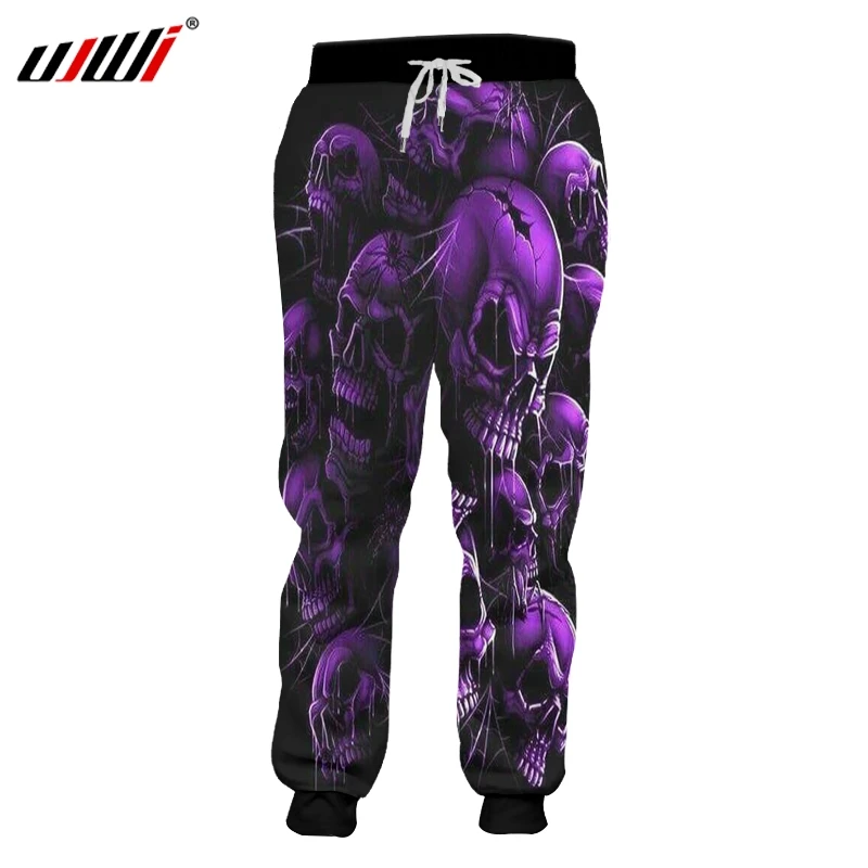 Мужские длинные брюки UJWI, черные пуловеры в стиле хип-хоп с 3D-принтом фиолетовых черепов, в стиле Харадзюку