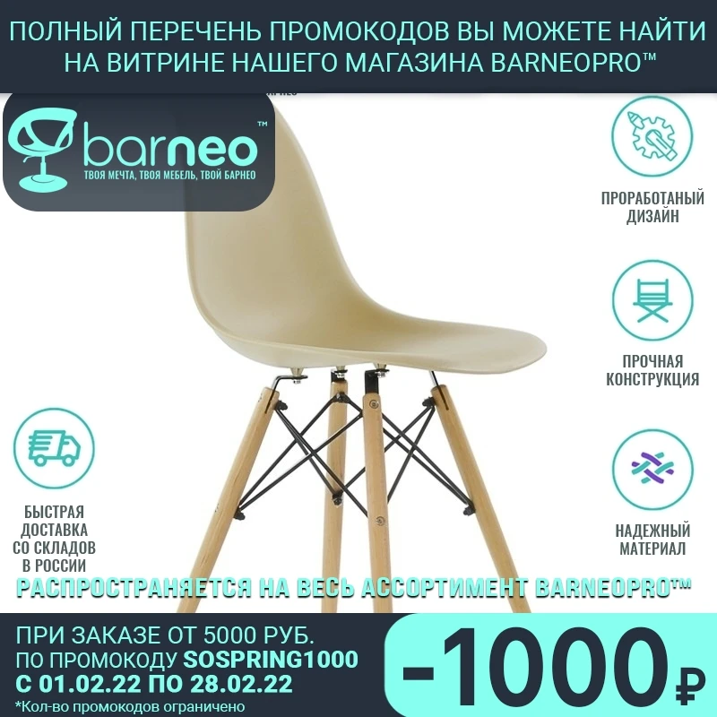 Дизайнерский стул Barneo N-12 95890 Superior бежевый интерьерный кухонный обеденный сидение пластик ножки бук