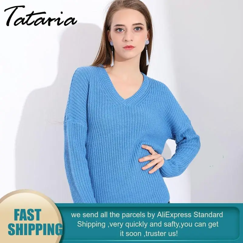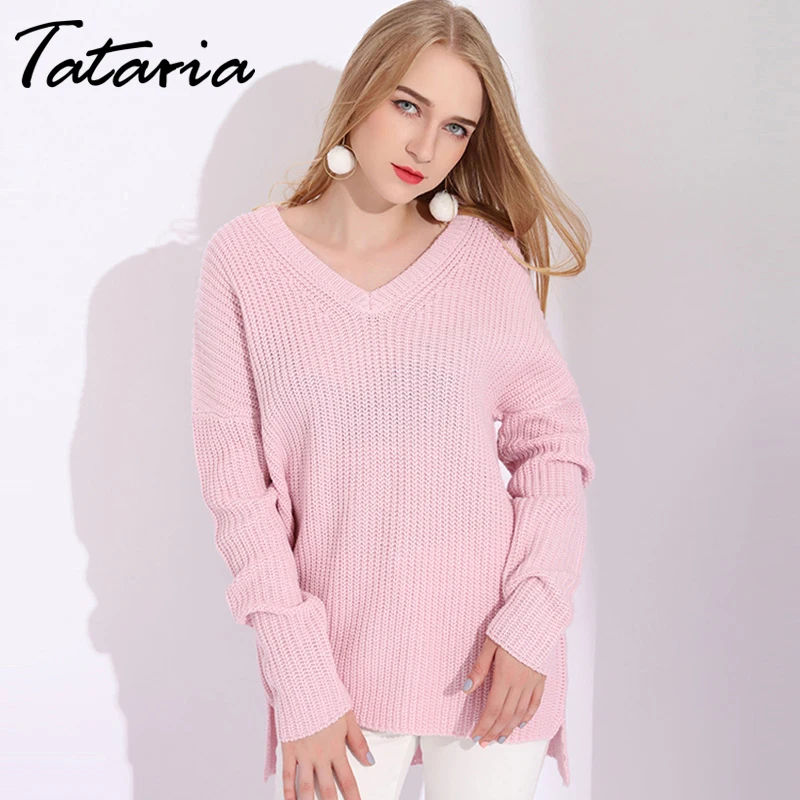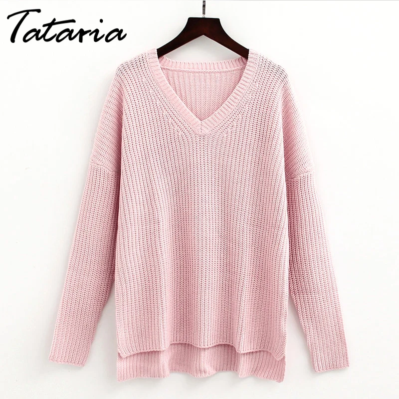Теплый Зимний вязаный свитер с v-образным вырезом, Женский пуловер, вязаные Джемперы, розовые свитера для женщин, свитера и пуловеры, женский свитер