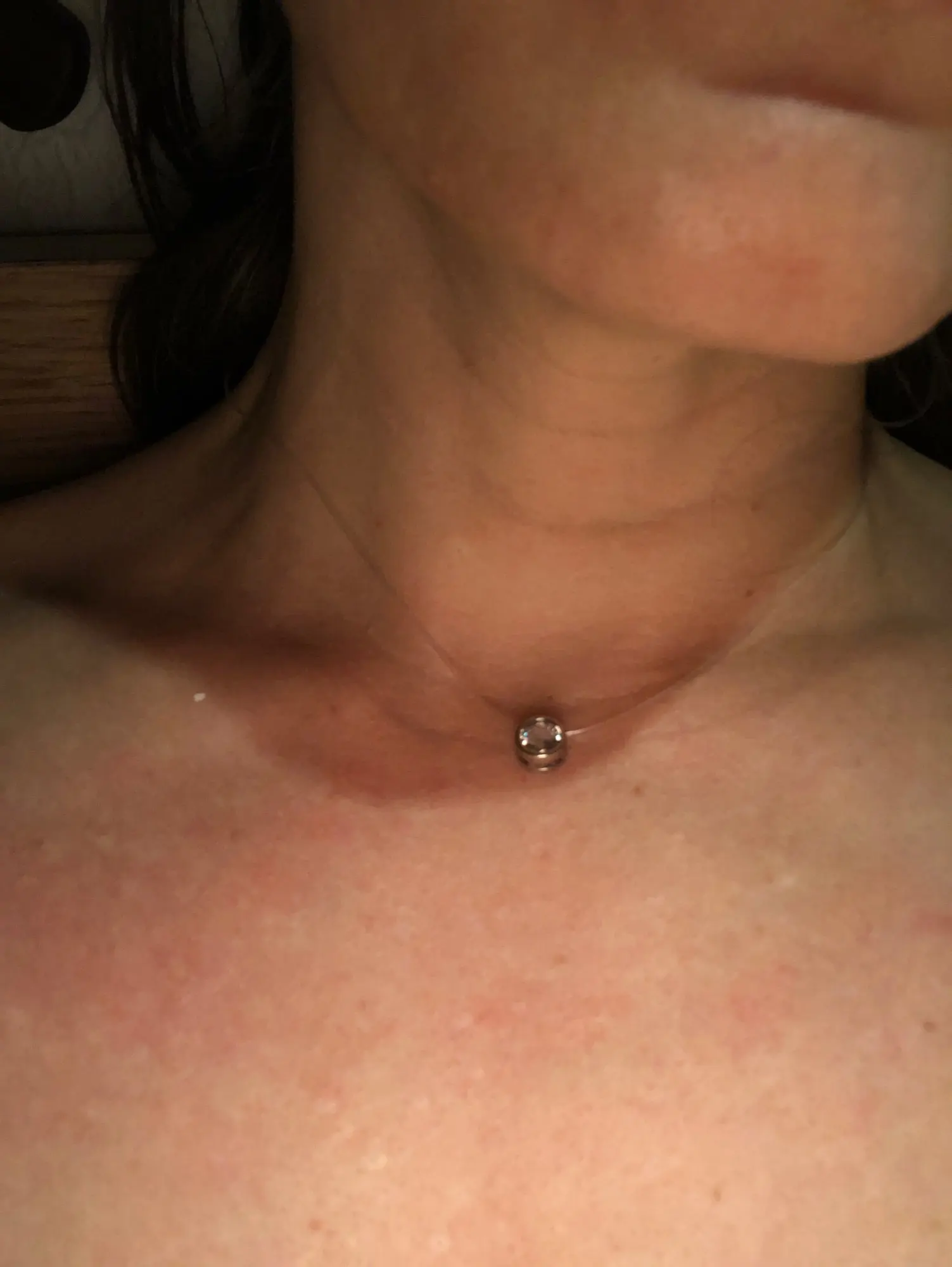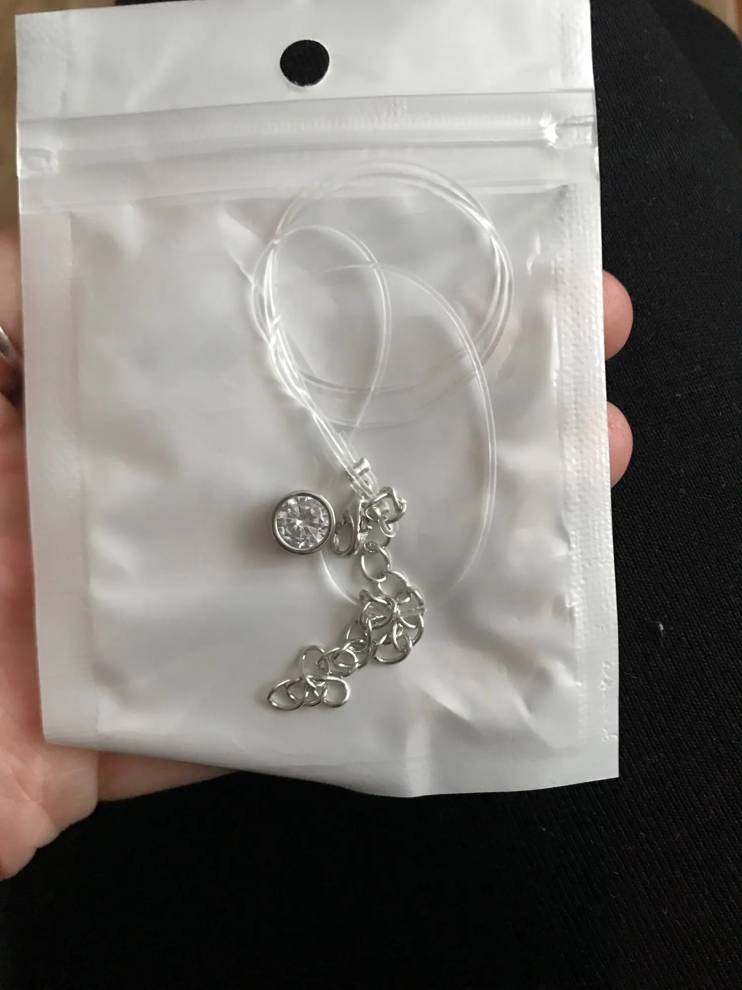 El collar está muy bonito, me gustó mucho el detalle de imitación cristal es hermoso, tenía un poco de miedo porque la cadena fuera plástica pero queda muy bien.