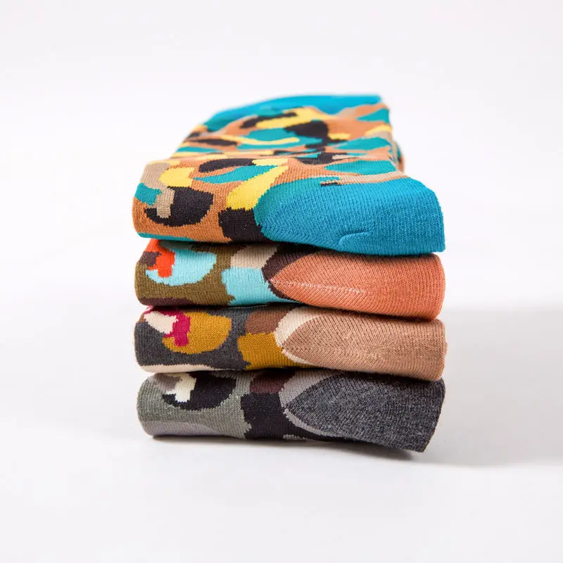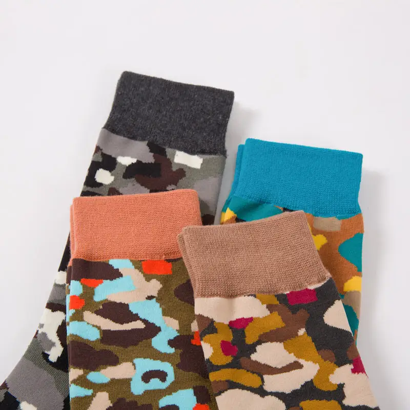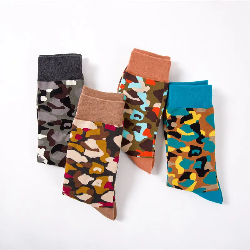 Высококачественные счастливые мужские носки, цветные мужские носки из чесаного хлопка, новые мужские камуфляжные длинные носки для скейтборда, большие размеры