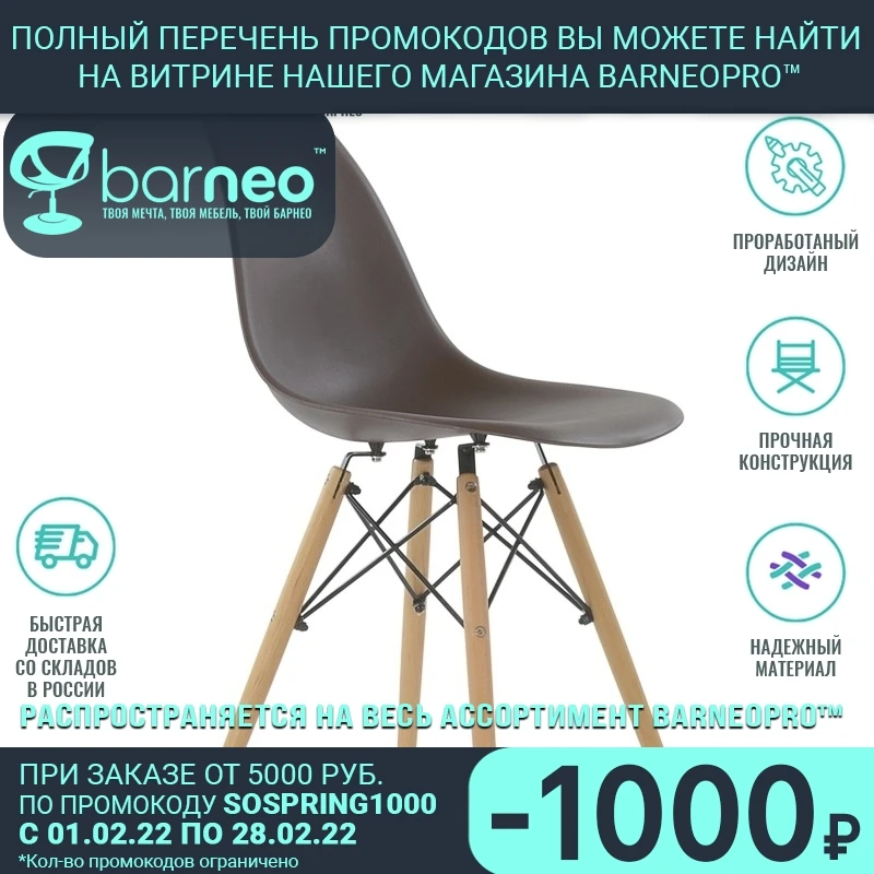 Дизайнерский стул Barneo N-12 95755 Superior темн.коричневый интерьерный кухонный обеденный сидение пластик ножки бук