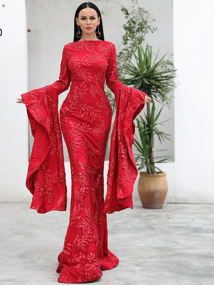 Missord 2022 свадебное длинное платье, сексуальное женское осеннее платье с круглым вырезом и расклешенными рукавами, однотонное блестящее элегантное белое платье русалки
