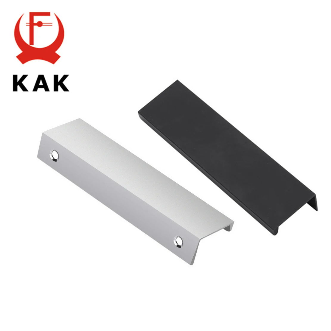 KAK модные черные скрытые ручки для шкафа из алюминиевого сплава, ручки для кухонного шкафа ручки для выдвижных ящиков, мебельная дверная фурнитура