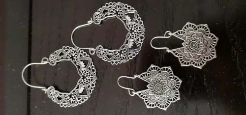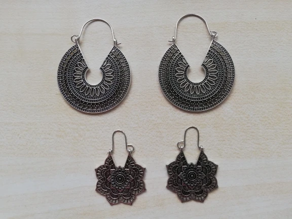 Мое первое впечатление было очень хорошим, серьги супер великолепные, я заказал 3 пары (фотографии), очень яркие, драгоценные (но, осторожно, это не серебро), мои уши стали красными, потому что это стоит немного, чтобы приклеить застежку, трудно потерять их. Они как металлический лист, украшенный, очень красивый, ухо весит немного и движется, я думал, что они будут маленькими, но они большие. Моя оценка очень положительная, для вас или для отдачи, вы будете выглядеть отлично. Большое спасибо, г-н продавец, ваше обслуживание было отличным, я настоятельно рекомендую ваш магазин и продукты. Девочки очень хорошие и дешевые, воспользуйтесь преимуществами!