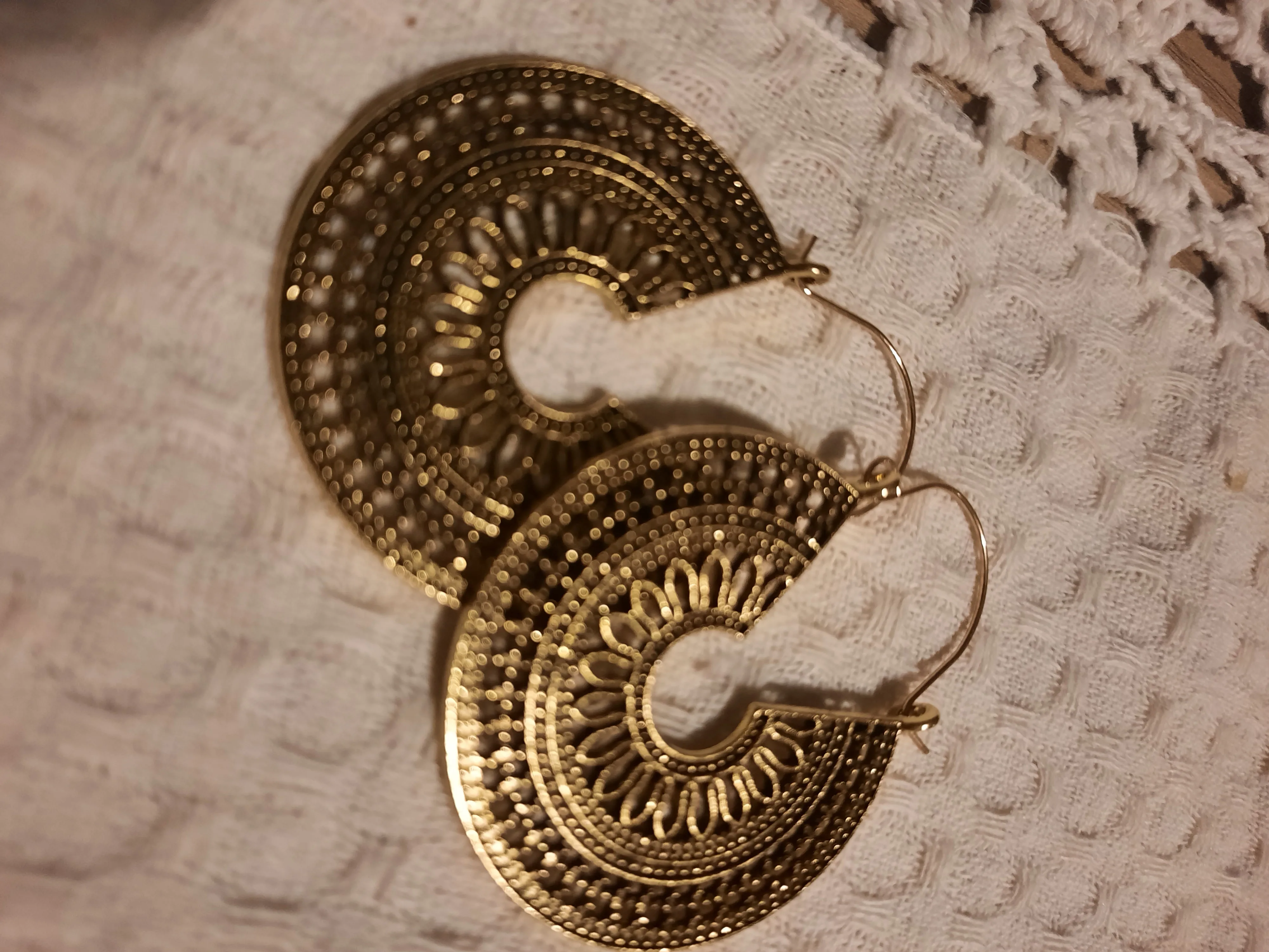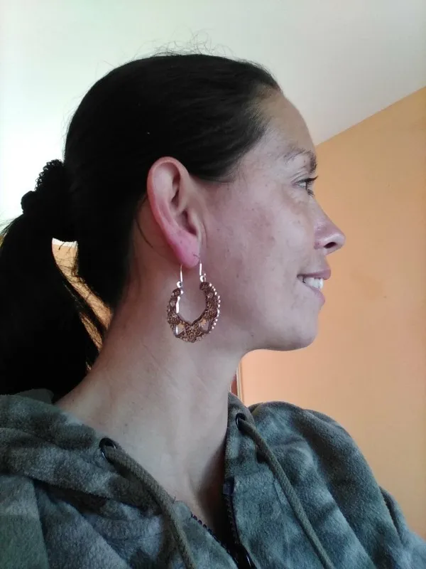 Серёжки очень красивые, но огорчает, что рельефный рисунок только с одной стороны. В носке хочется, чтобы это было с двух сторон.
