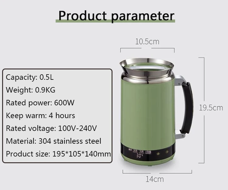 Домашний электрический чайник DMWD, 0,5 л, портативная чашка для тушения супа, чайник для кипячения воды, нержавеющая сталь 304
