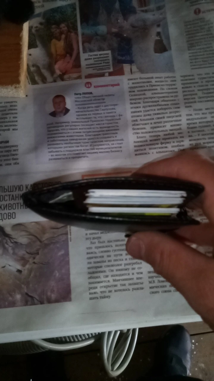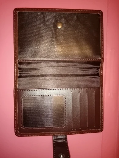 Пришёл быстро.хотел именно такой с отсеками для карт и что бы закрывался.качества вроде не плоховат - единственный минус это место под кнопку очень сильно выпирает боюсь что след останется. Хотя может я и ошибаюсь время покажет. Спасибо