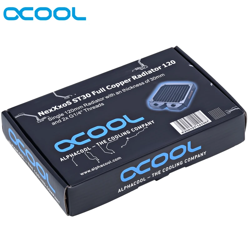 Оригинальный Alphacool ST30 чехол для компьютера медный 120 мм медный радиатор черный костюм 12 см вентилятор 30 мм Толщина