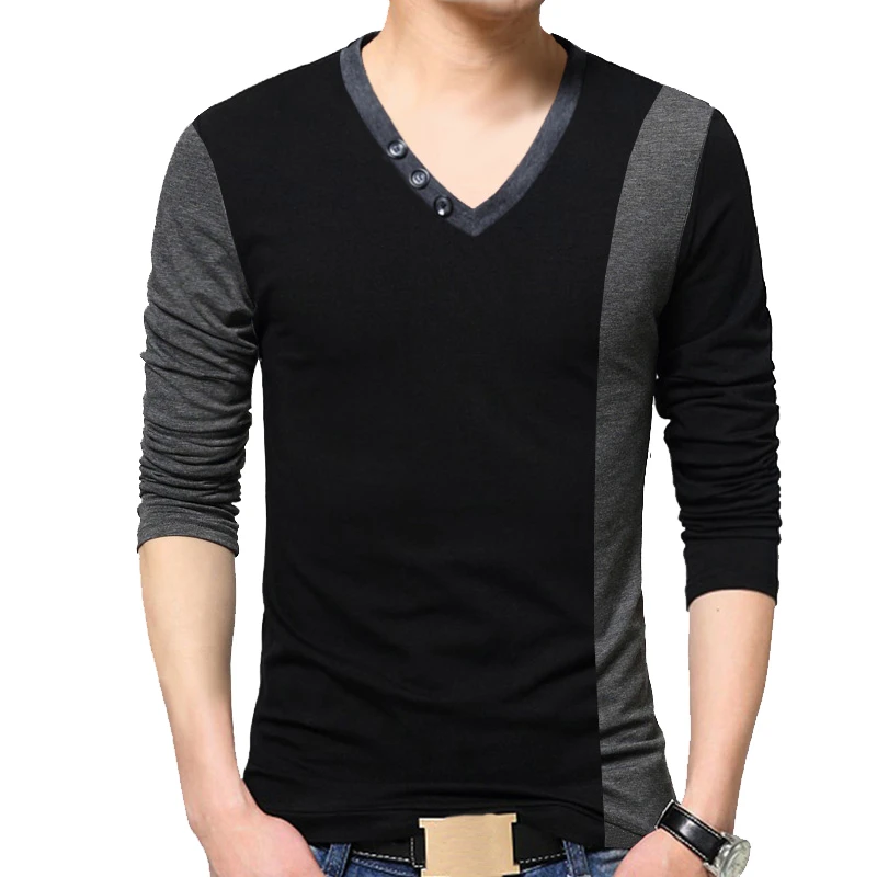 Футболка мужская хлопковая, с длинным рукавом, с V-образным вырезом, 2021-5XL