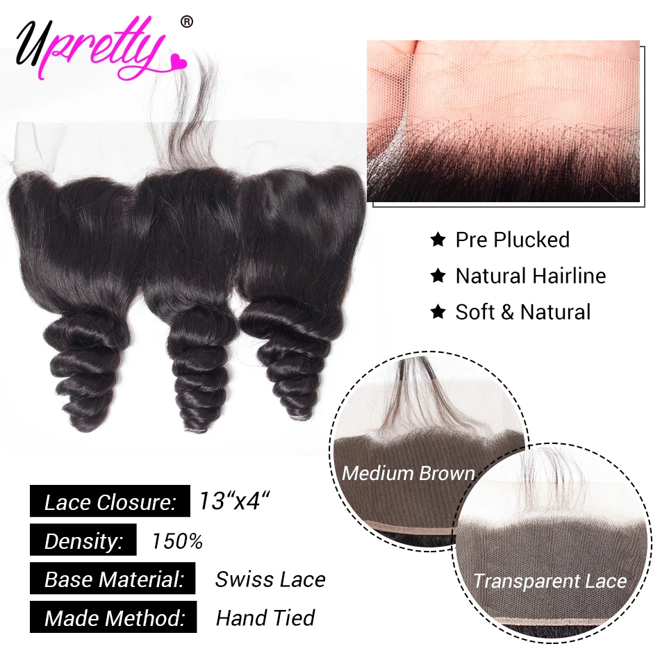 Пучки свободных волн Upretty, пучки с фронтальной HD прозрачной кружевной передней частью с пучками, бразильские человеческие волосы, 3 пряди с застежкой
