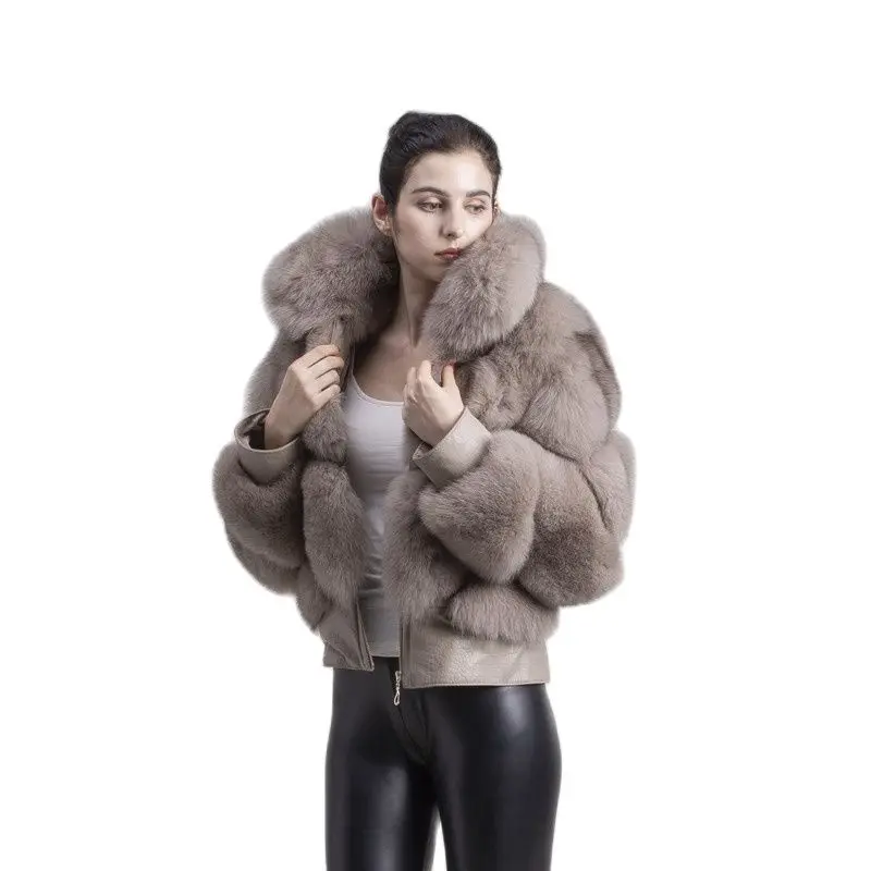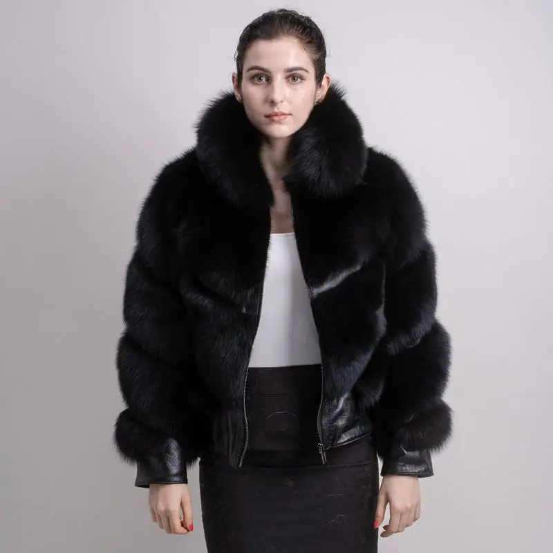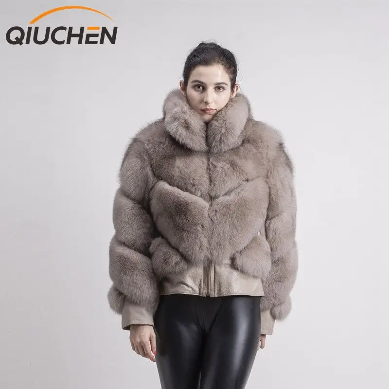 QIUCHEN PJ1815 2020 Бесплатная доставка Новое поступление Женская Зимняя Толстая куртка из натурального Лисьего меха большой воротник с застежкой-молнией из кожи с принтом