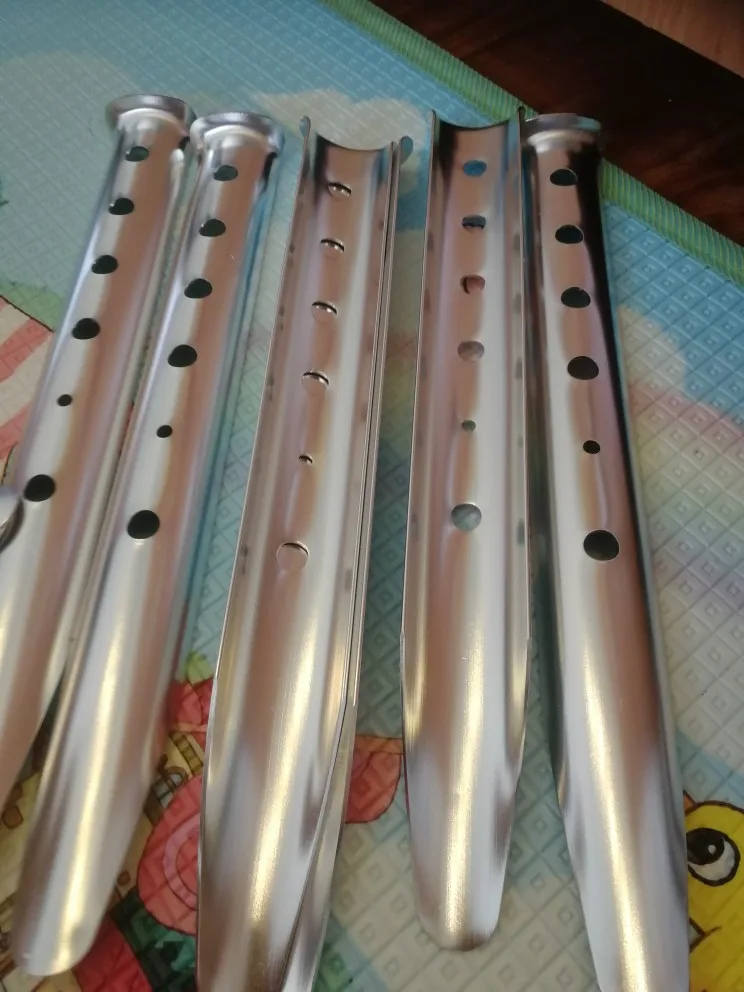 колышки очень большие, надеюсь что в песке будут держаться хорошо. Но есть сомнения в качестве используемого материала, такое впечатление, что они не алюминиевые, а силуминовые и, если забивать, то могут сломаться. Да и цена завышена, за те же деньги можно купить их в России☝️