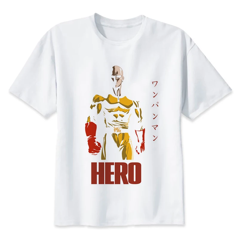 Мужская летняя футболка с забавным принтом в стиле японского аниме Сайтама, футболка с коротким рукавом и белым принтом для мальчиков